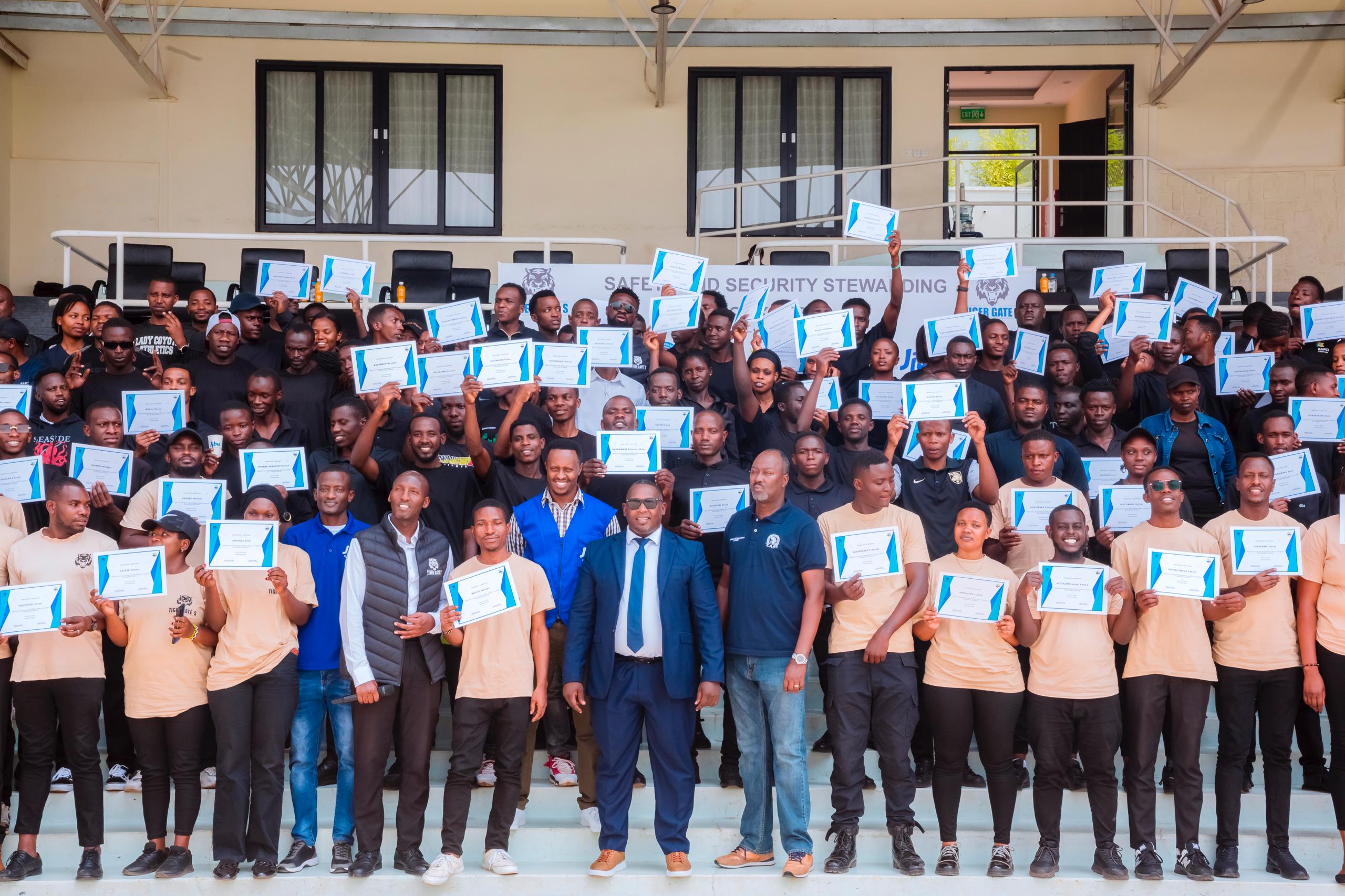 Abakora akazi ko gucunga umutekano, cyane ku bibuga by’imikino, bo kigo Tiger Gate S bishimira ko bongerewe ubumenyi binyuze mu mahugurwa bahawe azabafasha kunoza akazi kabo.