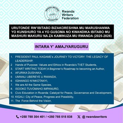 Urugaga rw’abanditsi mu Rwanda, ku nshuro ya kane, hatangijwe amarushanwa yo gusoma no kwandika ibitabo. Aya marushanwa akareba abanyeshuri bose biga muri Kaminuza n’amashuri makuru mu Rwanda. Kuri iyi nshuro hiyandikishije abanyeshuri basaga 3,000 barimo Abanyarwanda n’abanyamahanga.