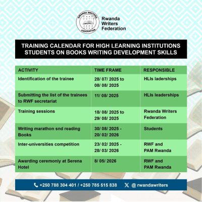 Agira ati “Urugaga rw’Abanditsi rwiyemeje kuzahugura abanyeshuri uko bandika ibitabo ndetse no kubaherekeza mu rugendo rwabo kugeza igitabo gisojwe.”