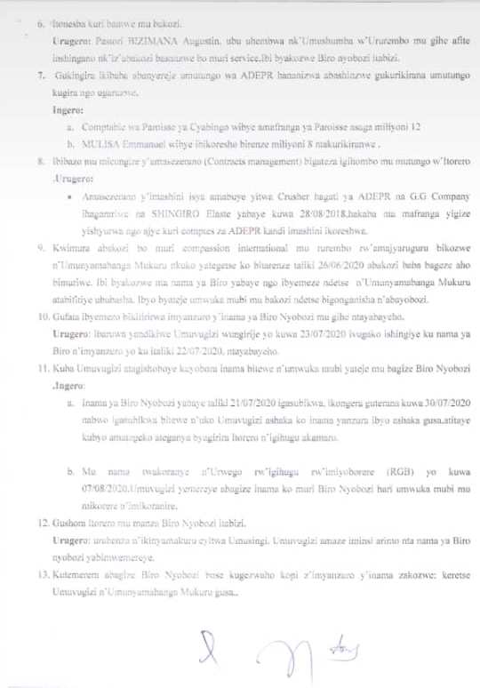 Mu nyandiko Ikinyamakuru Panorama gifitiye kopi, hagaragaramo imyanzuro 13 yafashwe mu nama yo ku wa 13/08/2020 yarimo uruhande rw’Umuvugizi wungirije Rev Karangwa John ari nawe wayiyoboye, ishyirwaho umukono na we hamwe na Umuhoza Eulerie Ushinzwe Imari n’Ubutegetsi, na Past. Jean Paul Ntaganda Umujyanama mu by’imari n’ubuyobozi.
