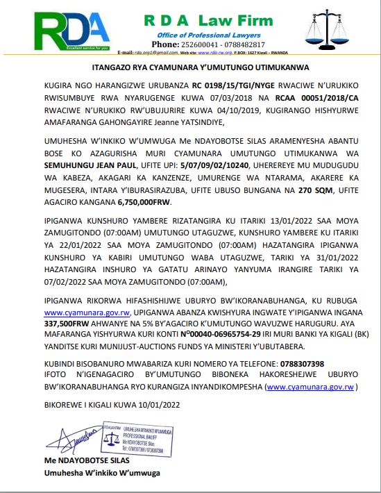 Bugesera: Cyamunara y’ikibanza mu kagari ka Kanzenze, Umurenge wa Ntarama