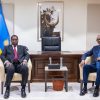 Perezida wa Centrafrique Faustin Archange Touadéra yakiriwe na mugenzi we w’u Rwanda Paul Kagame mu Biryo bye Village Urugwiro baganira uko imikoranire y’ingabo z’u...