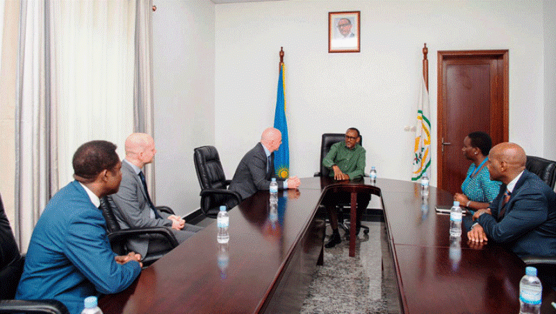 Perezida wa Repubulika y’u Rwanda, Paul Kagame, ku Cyumweru tariki ya 26 Gashyantare 2017, yakiriye umuyobozi w’Ishyirahamwe ry’ Umupira w’Amaguru ku Isi Gianni Infantino....