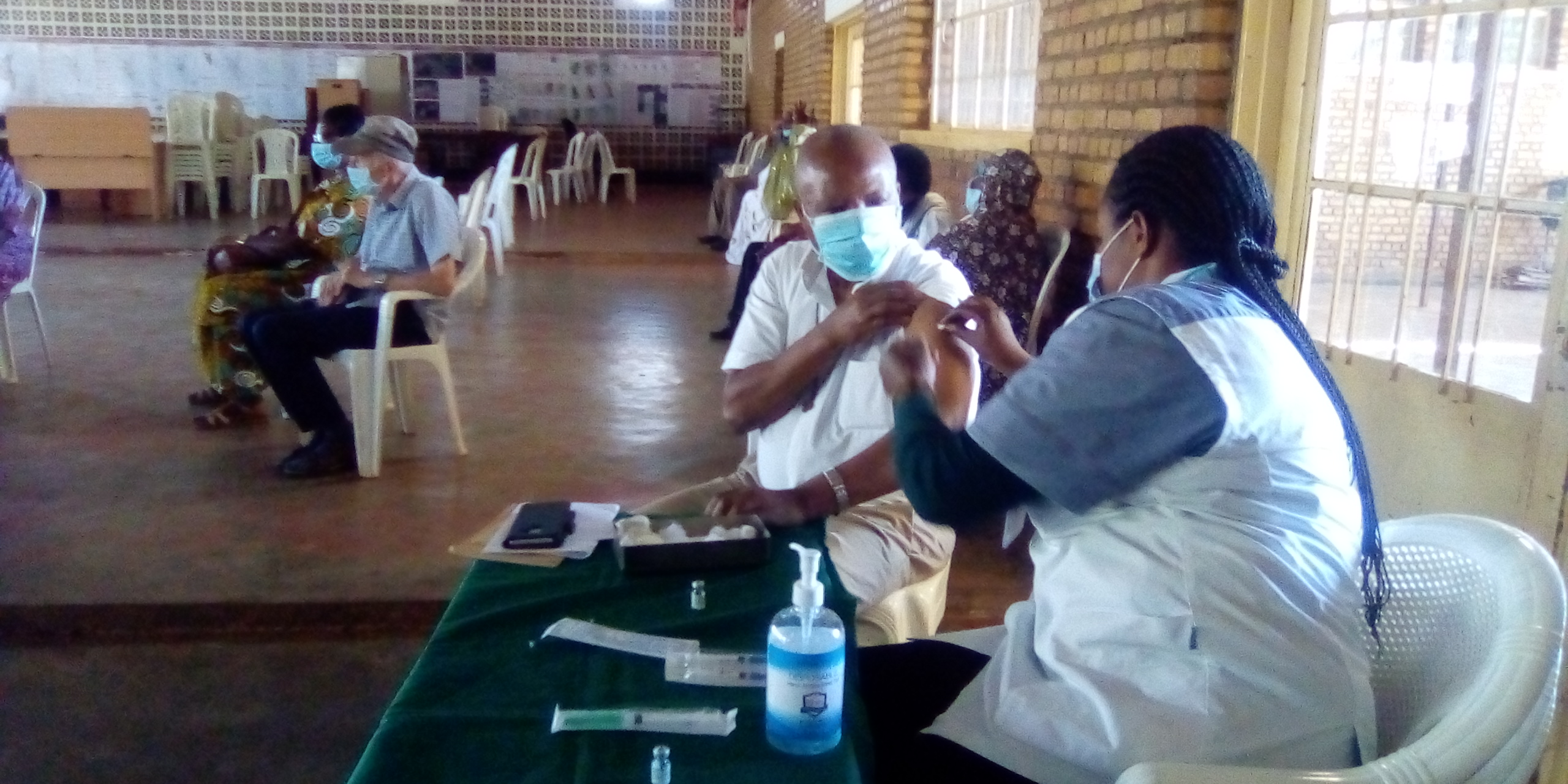 Bamwe mu bageze mu zabukuru bo mu karere ka Huye, Umurenge wa Ngoma ku kigonderabuzima cya CUSP (Centre Universitaire de Santé Publique) cyo ku...