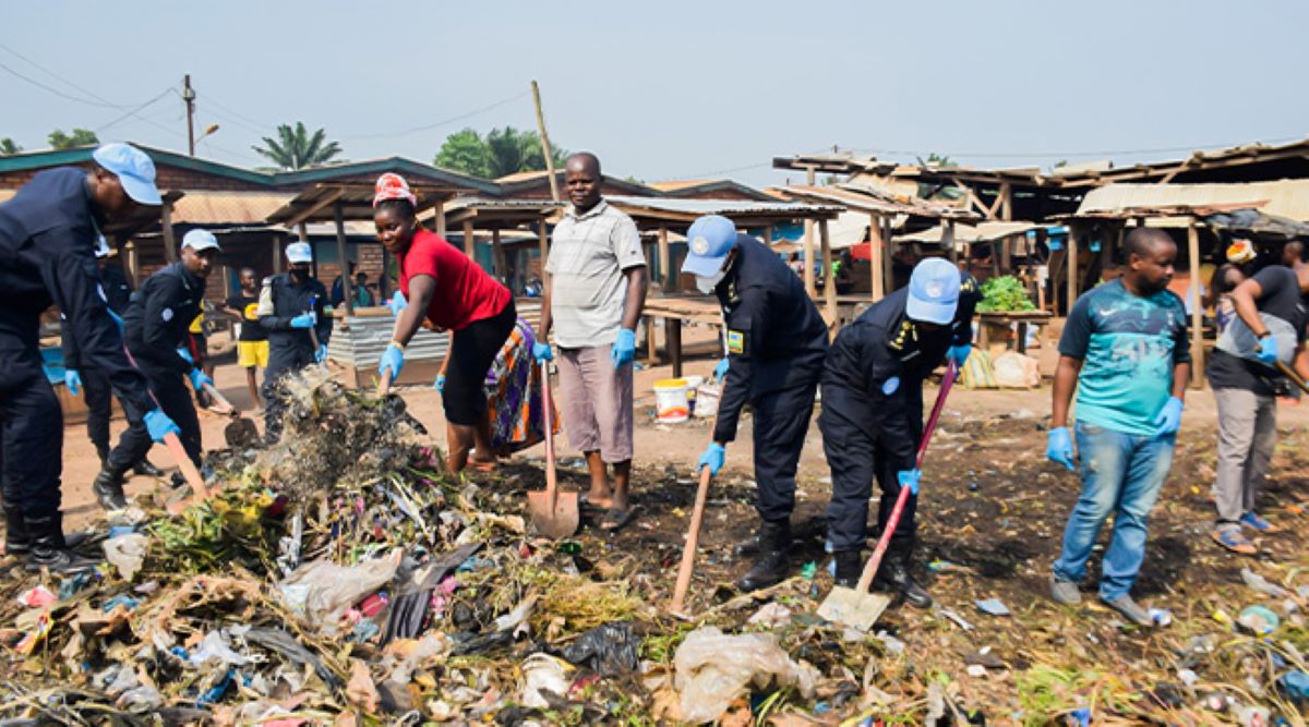 Abapolisi b’u Rwanda bagize Itsinda RWAFPU I-9 riri mu butumwa bwa Loni bwo kubungabunga amahoro muri Repubulika ya Centrafrique (MINUSCA), bafatanyije n’abaturage mu muganda rusange wo gusukura Isoko rya Sica II, riherereye mu Mujyi wa Bangui.