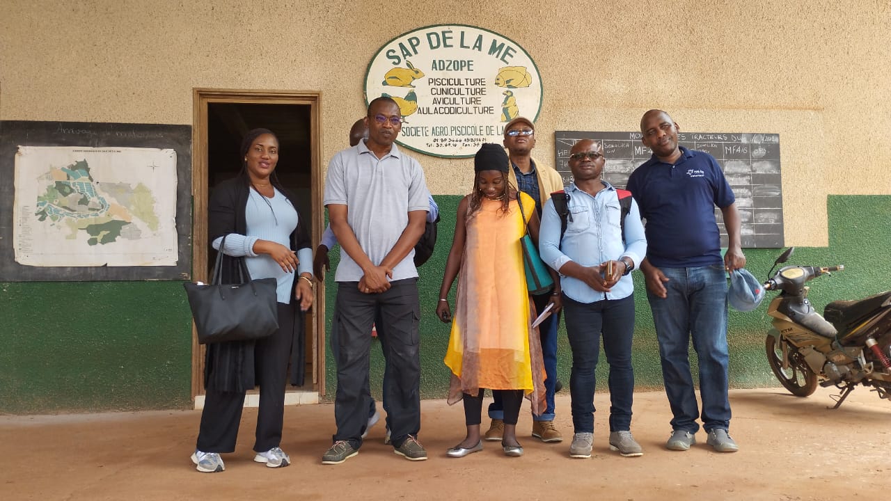 Aimable Twahirwa, right, visiting Société Agro Piscicole de la Mé (SAP) in Côte d’Ivoire in 2024. The company has been able to implement effective solutions to address the challenges of climate change. (Image/ Rivonala Razafison).