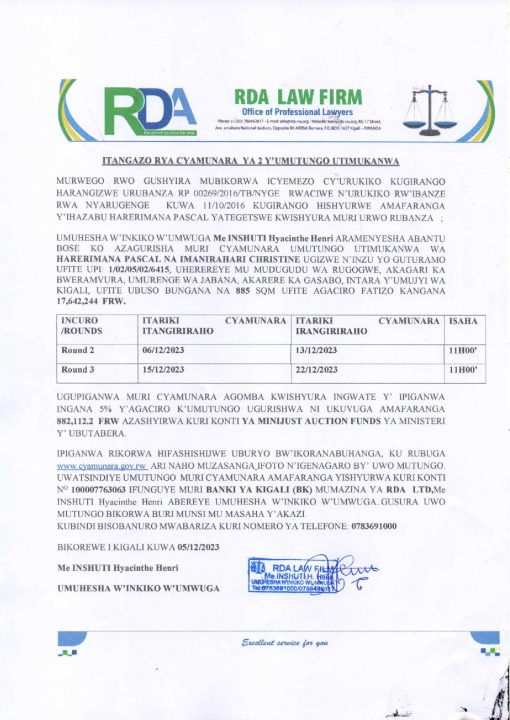 Gasabo: Cyamunara y’ikibanza cyubatsemo inzu yo guturamo kibaruye kuri UPI: 1/02/05/02/6415 (885 Sqm): mu murenge wa Jabana, Akagari ka Bweramvura, Umudugudu wa Rugogwe