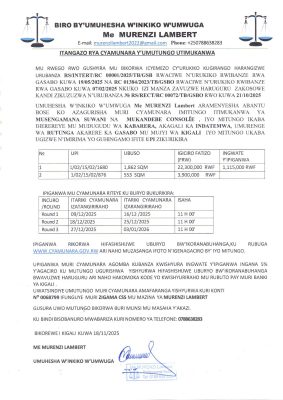 Gasabo: Cyamunara y’imitungo itimukanwa ibaruye kuri UPI: 1/02/15/02/1680 (Sqm: 1,862) na UPI: 1/02/15/02/876 (Sqm: 553); mu murenge wa Rutunga, Akagari ka Indatemwa, Umudugudu wa Kabarera