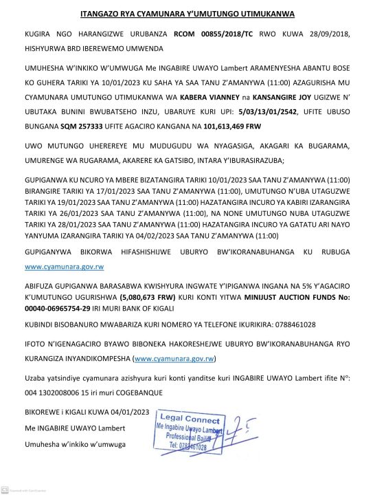 Gatsibo: Cyamunara y’ubutaka bunini bwubatseho inzu bufite UPI: 5/03/13/01/2542; mu mudugudu wa Nyagasiga, Akagari ka ugarama, Umurenge wa Rugarama