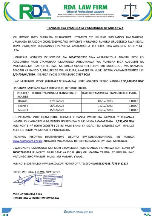 Huye: Cyamunara y’ikibanza kibaruye kuri UPI: 2/04/08/04/2890 (7,657 Sqm); mu murenge wa Mukura, Akagari ka Rango A, Umudugudu wa Nyamata