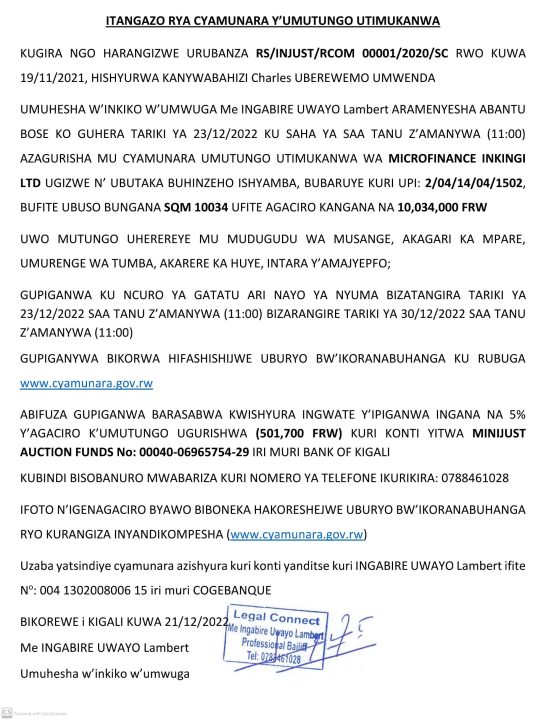 Huye: Cyamunara y’ubutaka buhinzeho ishyamba bufite UPI: 2/04/14/04/1502; mu murenge wa Tumba, Akagari ka Mpare, Umudugudu wa Musange
