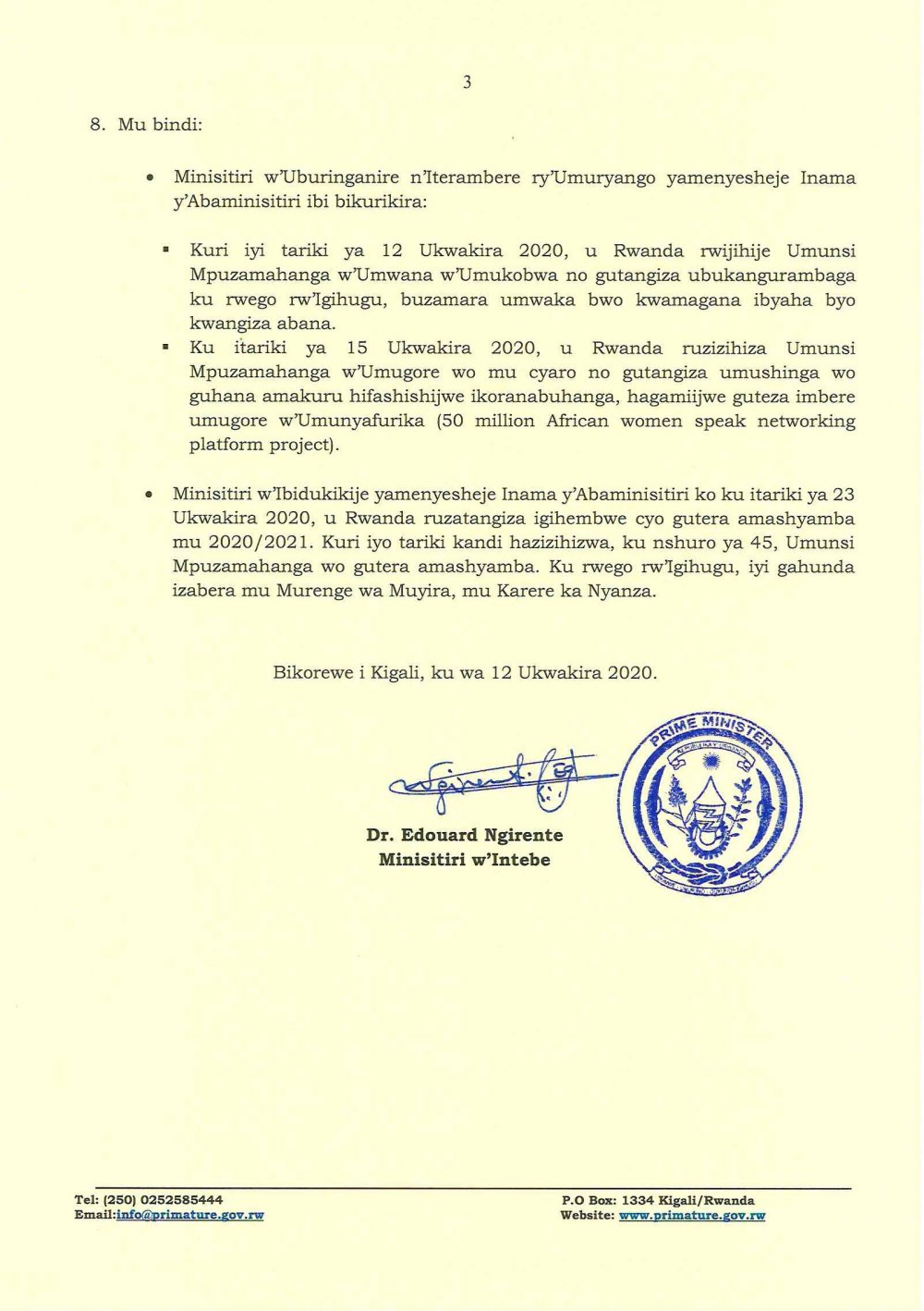 Inama y’Abaminisitiri kandi yemeje ko ‘abitabira inama, ntibasabwa icyemezo cy’uko bipimishije COVID-19, ariko abategura inama bagomba kubahiriza amabwiriza y’inzego z’ubuzima harimo no kuteranze 50% by’ubushobozi bwo kwakira abantu bw’aho bateranira.