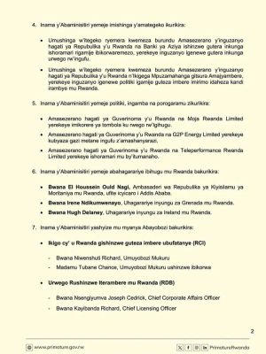 Ku ruhando mpuzamahanga, Inama y’Abaminisitiri yemeje abahagarariye ibihugu mu Rwanda barimo Ambasaderi wa Moritaniya, uhagarariye Grenada ndetse n’uwa Ireland, bigaragaza gukomeza kwagura umubano w’u Rwanda n’amahanga.