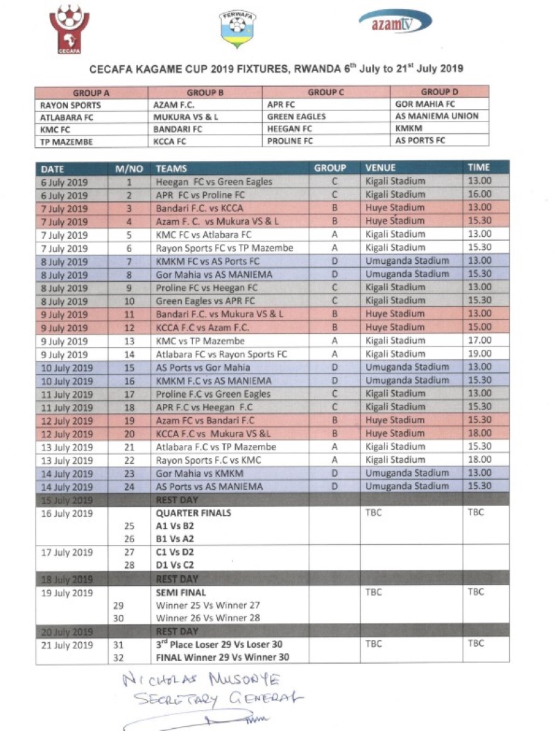 Uko amakipe agomba guhura mu mikino ya CECAFA KAGAME CUP 2019