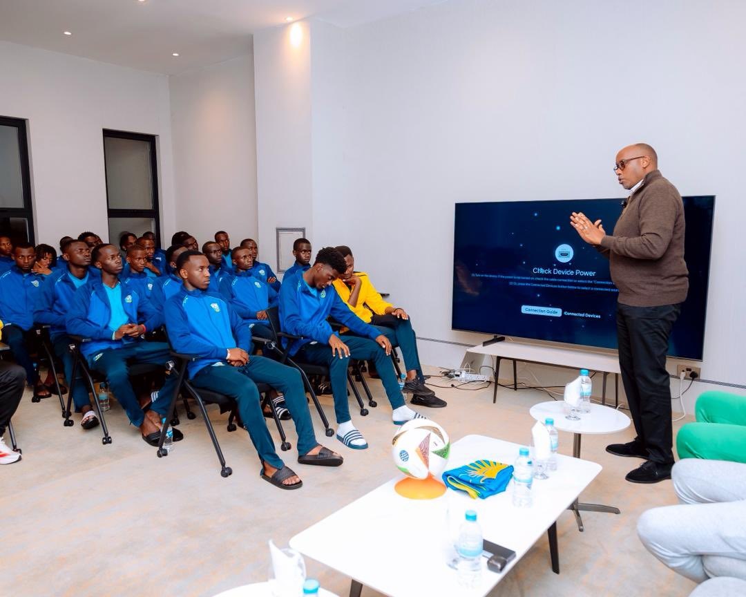 Shema Ngoga Fabrice wari kumwe n’umutoza w’Amavubi Adel Amrouche na Eric Nshimiyimana umwungirije yasabye abo bana kuzimana u Rwanda, nabo barabimusezeranya.
