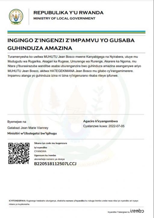 Ingingo z’ingenzi z’impamvu yo gusaba guhindura amazina ya MUHUTU Jean Bosco