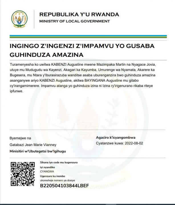 Ingingo z’ingenzi z’impamvu yo gusaba guhinduza amazina ya KABENZI Augustine