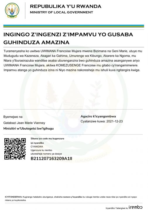 Ingingo z’ingenzi z’impamvu zo gusaba guhindura amazina ya UWIMANA francoise