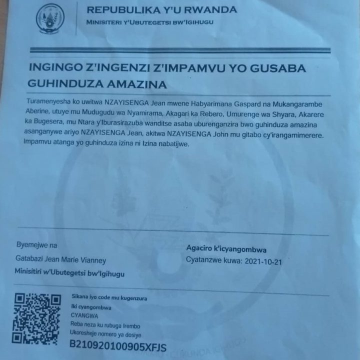Ingingo z’ingenzi zo guhindura amazina ya nzayisenga jean