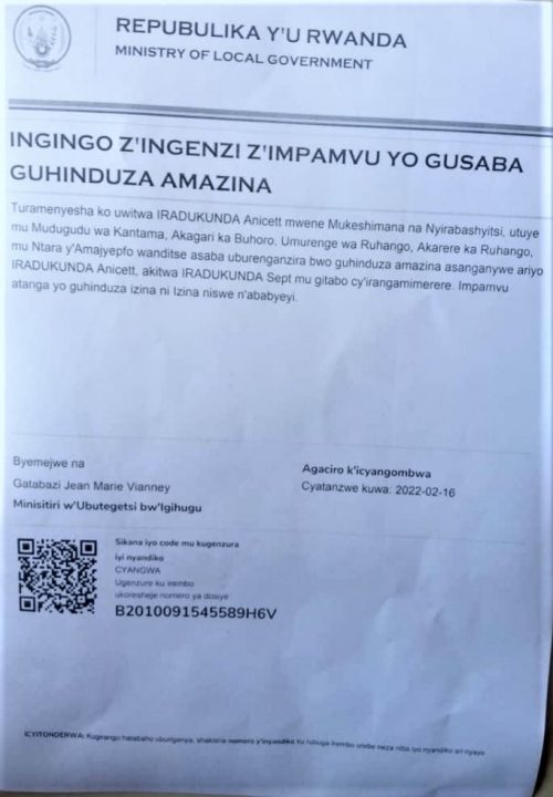Ingingo z’ingenzi zo gusaba guhindura amazina ya IRADUKUNDA Anicett