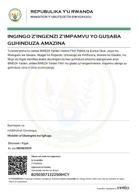 Itangazo ry’ingingo z’ingenzi z’impamvu zo guhinguza amazina ya BINEZA Yarden