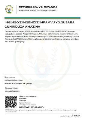 Itangazo ry’ingingo z’ingenzi zo guhinduza amazina ya BWIZA Amaris