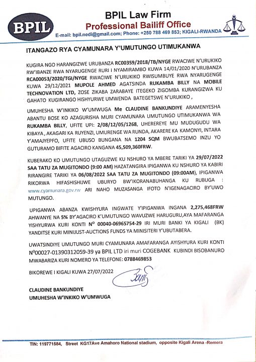 Kamonyi: Cyamunara y’ubutaka bwubatsemo inzu yo guturamo, mu kagari ka Ruyenzi, Umurenge wa Runda; UPI: 2/08/12/05/1268
