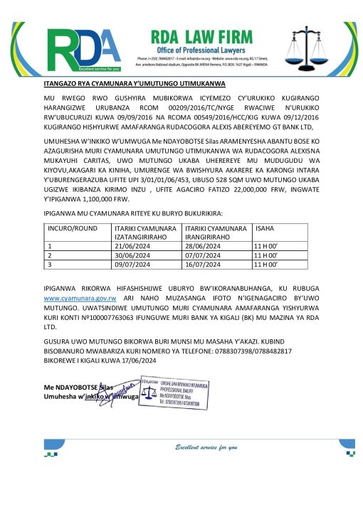Karongi: Cyamunara y’ikibanza kirimo inzu kibaruye kuri UPI: 3/01/01/06/453 (Sqm 528); mu murenge wa Bwishyura, Akagari ka Kiniha, Umudugudu wa Kiyovu
