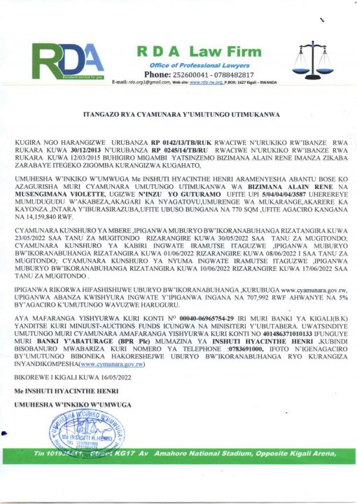Kayonza: Cyamunara y’inzu yo Guturamo mu kagari ka Nyagatovu, Umurenge wa Mukarange UPI: 5/04/04/04/3587