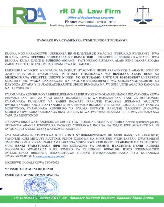 Kayonza: Cyamunara y’inzu yo guturamo mu kagari ka Nyagatovu, Umurenge wa Mukarange UPI: 5/04/04/04/3587