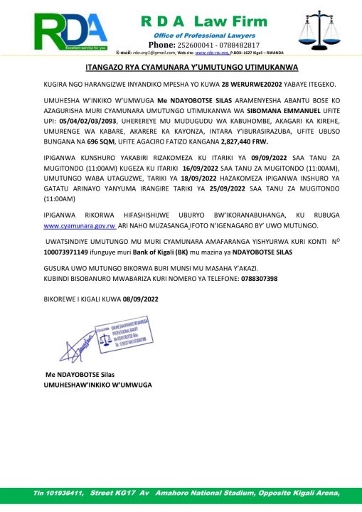 Kayonza: Cyamunara y’umutungo utimukanwa mu kagari ka Kirehe, Umurenge wa Kabare; UPI: 05/04/02/03/2091