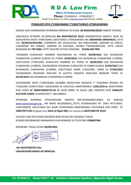 Kayonza: Cyamunara y’umutuno utimukanwa mu kagari ka Kirehe, Umurenge wa Kabare; UPI: 05/04/02/03/2096