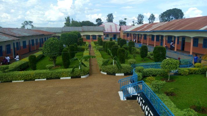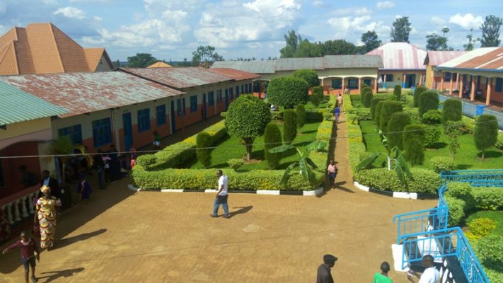 Ubusitani bw’imbere mu kigo. Inyuma hagaraga inyubako iri kure ni icumbi ry’abahungu, iyi igaragara cyane ni icumbi ry’abakobwa (Photo/Panorama)