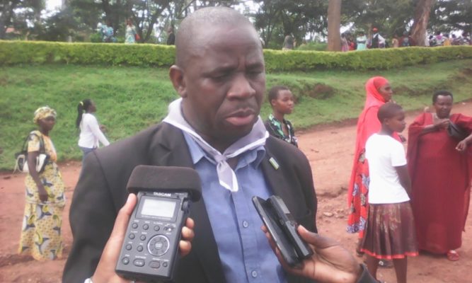 Aphrodise Nambaje uyobora akarere ka Ngoma aganira n’abanyamakuru ku bijyanye no kuzuza inzu y’amateka (Ifoto /Theoneste N.)