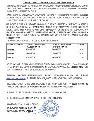 Kicukiro: Cyamunara y’ikibanza kibaruye kuri UPI: 1/03/09/02/741 (Sqm 536); mu murenge wa Nibonye, Akagari ka Niboye, Umudugudu wa Mwijuto