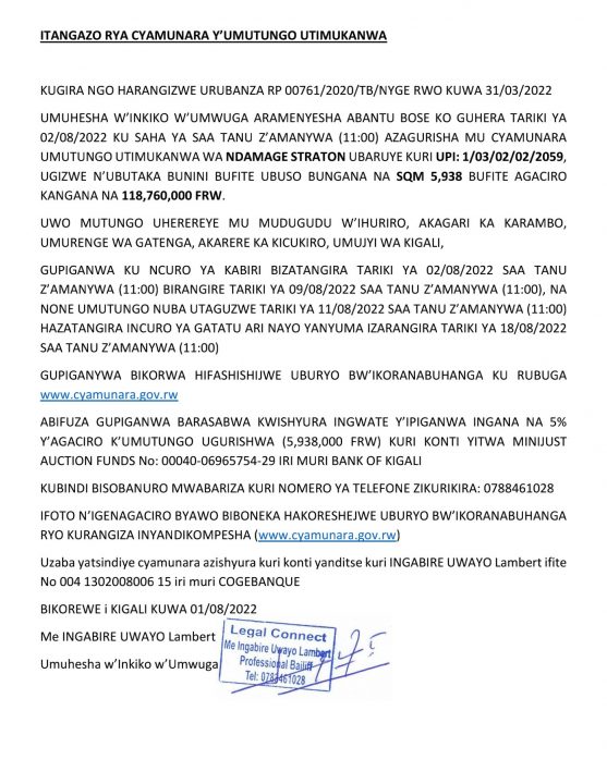 Kicukiro: Cyamunara y’ubutaka bunini mu kagari ka Karambo, Umurenge wa Gatenga; UPI: 1/03/02/2059