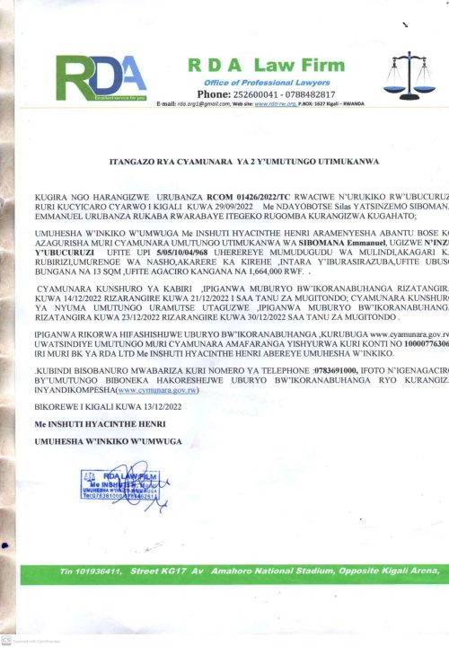 Kirehe: Cyamunara y’inzu y’ubucuruzi ibaruye kuri UPI: 5/05/10/04/968 mu murenge wa Nasho, Akagari ka Rubirizi, Umudugudu wa Murindi