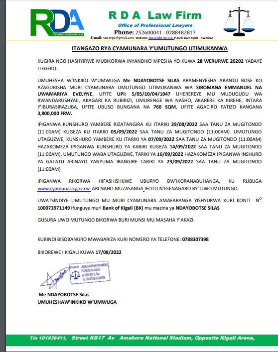 Kirehe: Cyamunara y’umutungo utimukanwa mu kagari ka Rubirizi, Umurenge wa Nasho; UPI: 5/05/10/04/1047