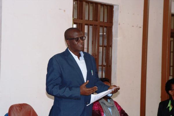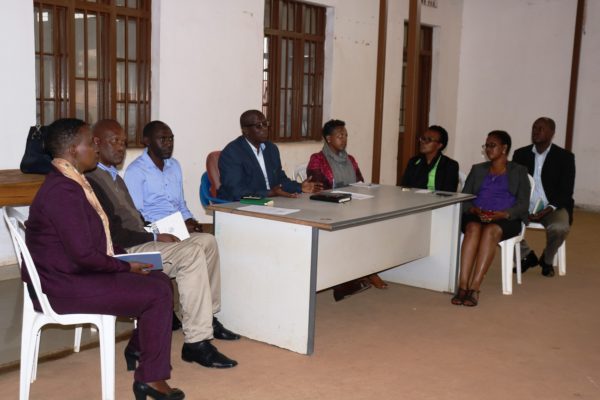 Brig. Gen. Peter John Bagabo ari kumwe n’abakozi ba Komisiyo y’Igihugu yo gusubiza mu buzima busanzwe abari abasirikare; n’abayobozi b’inzego z’ibanze mu biganiro n’abamugariye ku rugamba (Ifoto/Rene Anthere)