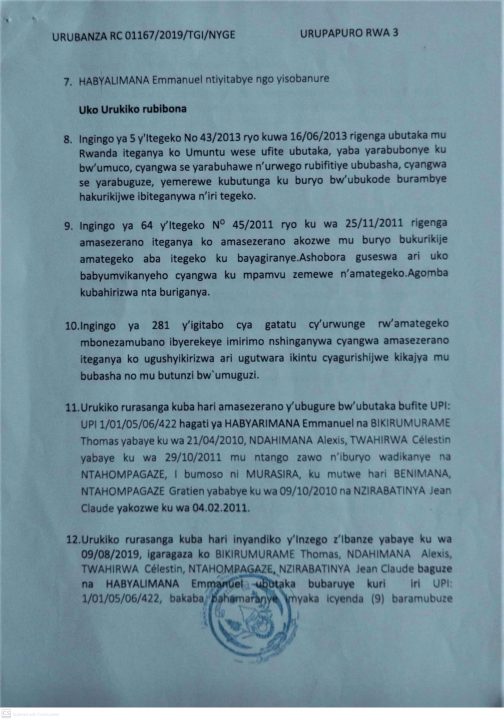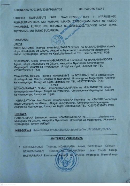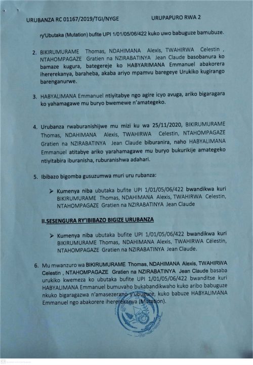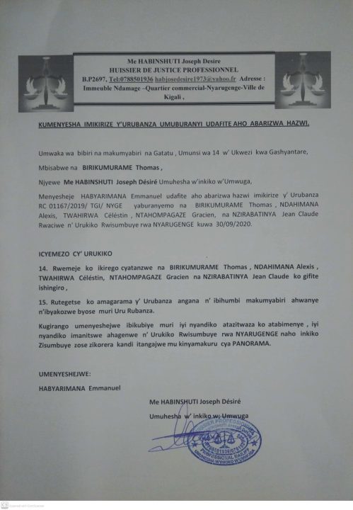 Kumenyesha Imikirize y’urubanza RC 01167/2019/TGI/NYGE umuburanyi udafite aho abarizwa hazwi