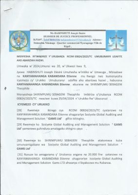 Kumenyesha Shirimpumu Sebageni Theophile imikirize y’urubanza RCOM 00824/2023/TC rwaciwe n’Urukiko rw’ubucuruzi umuburanyi abarizwa ahatazwi