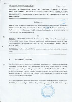 Kumenyesha Shirimpumu Sebageni Theophile imikirize y’urubanza RCOM 00824/2023/TC rwaciwe n’Urukiko rw’ubucuruzi umuburanyi abarizwa ahatazwi
