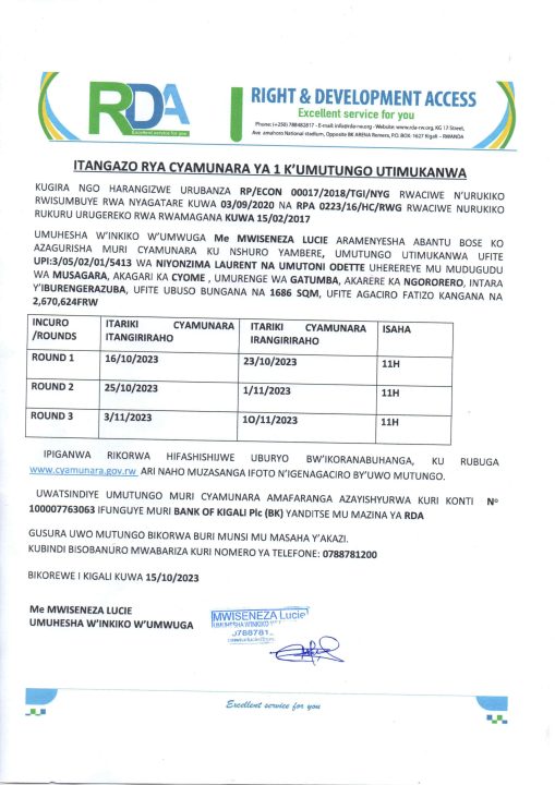 Ngororero: Cyamunara y’umutungo utimukanwa ubaruye kuri UPI: 3/05/02/01/5413; mu murenge wa Gatumba, Akagari ka Cyome, Umudugudu wa Musagara