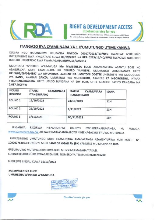 Ngororero: Cyamunara y’umutungo utimukanwa ubaruye kuri UPI: 3/05/09/06/4897; mu murenge wa Muhororo, Akagari ka Sanza, Umudugudu wa Kansi