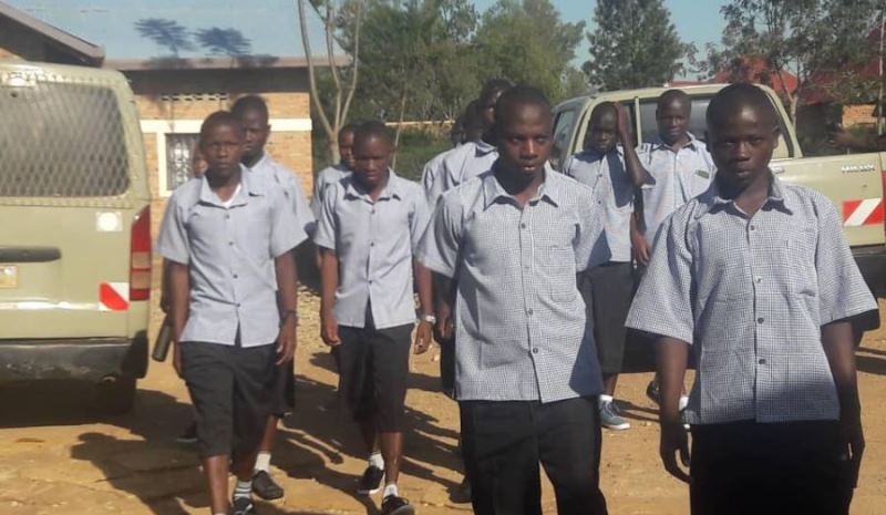 Abana bafungiye muri Gereza ya Nyagatare bageze ku Rwunge rw’amashuri rwa Nyagatare aho bari bagiye gukorera ibizamini bisoza amashuri abanza (Ifoto/Placide)