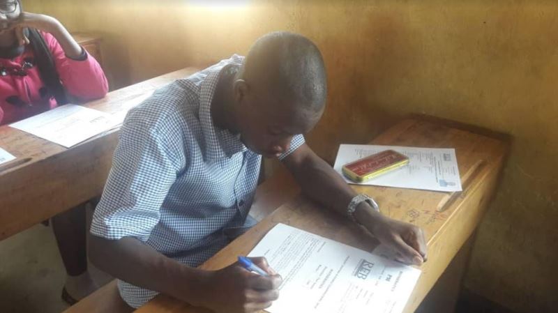 Abana bafungiye muri Gereza ya Nyagatare bashishikaye bakora ibizamini bisoza amashuri abanza (Ifoto/Placide)