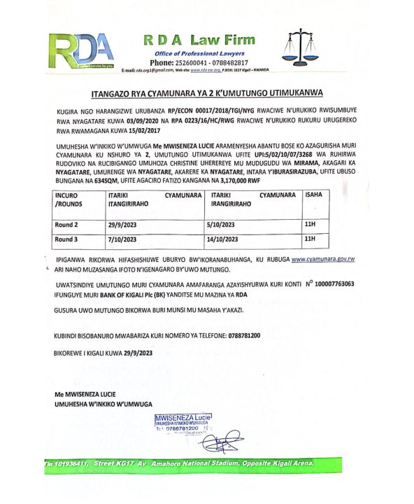 Nyagatare: Cyamunara y’umutungo utimukanwa ubaruye kuri UPI: 5/02/10/07/3268; Umurenge wa Nyagatare, Akagari ka Nyagatare, Umudugudu wa Mirama