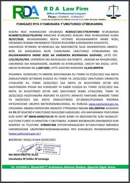 Nyarugenge: Cyamunara y’umutungo utimukanwa mu kagari ka Nyagafunzo, Umurenge wa Mageragere UPI: 1/01/05/05/959