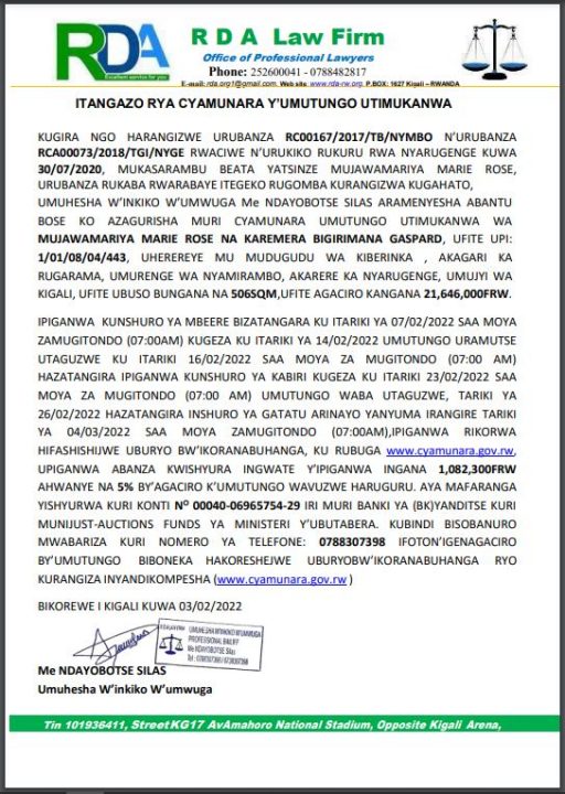 Nyarugenge: Cyamunara y’umutungo utimukanwa mu kagari ka Rugarama, Umurenge wa Nyamirambo UPI: 1/01/08/04/443