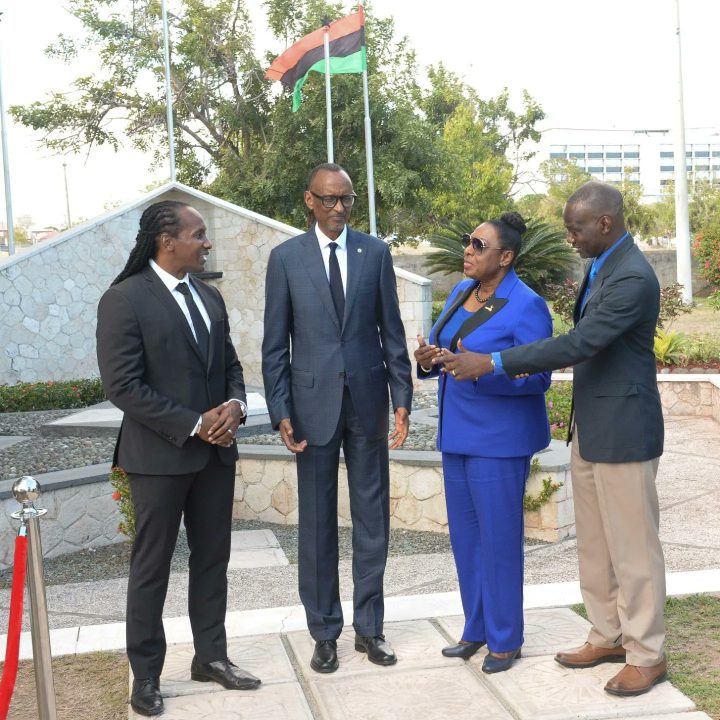 Nyuma yo kuva ku kibuga cy’indege, Perezida Kagame yerekeje ahari imva y’intwari y’iki gihugu, Marcus Mosiah Garvey, waharaniye uburenganzira bw’abirabura. Aha Umukuru w’Igihugu akaba yashyize indabo kuri iyi mva ndetse yunamira iyi ntwari.